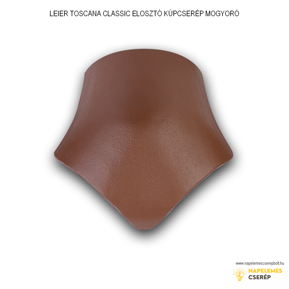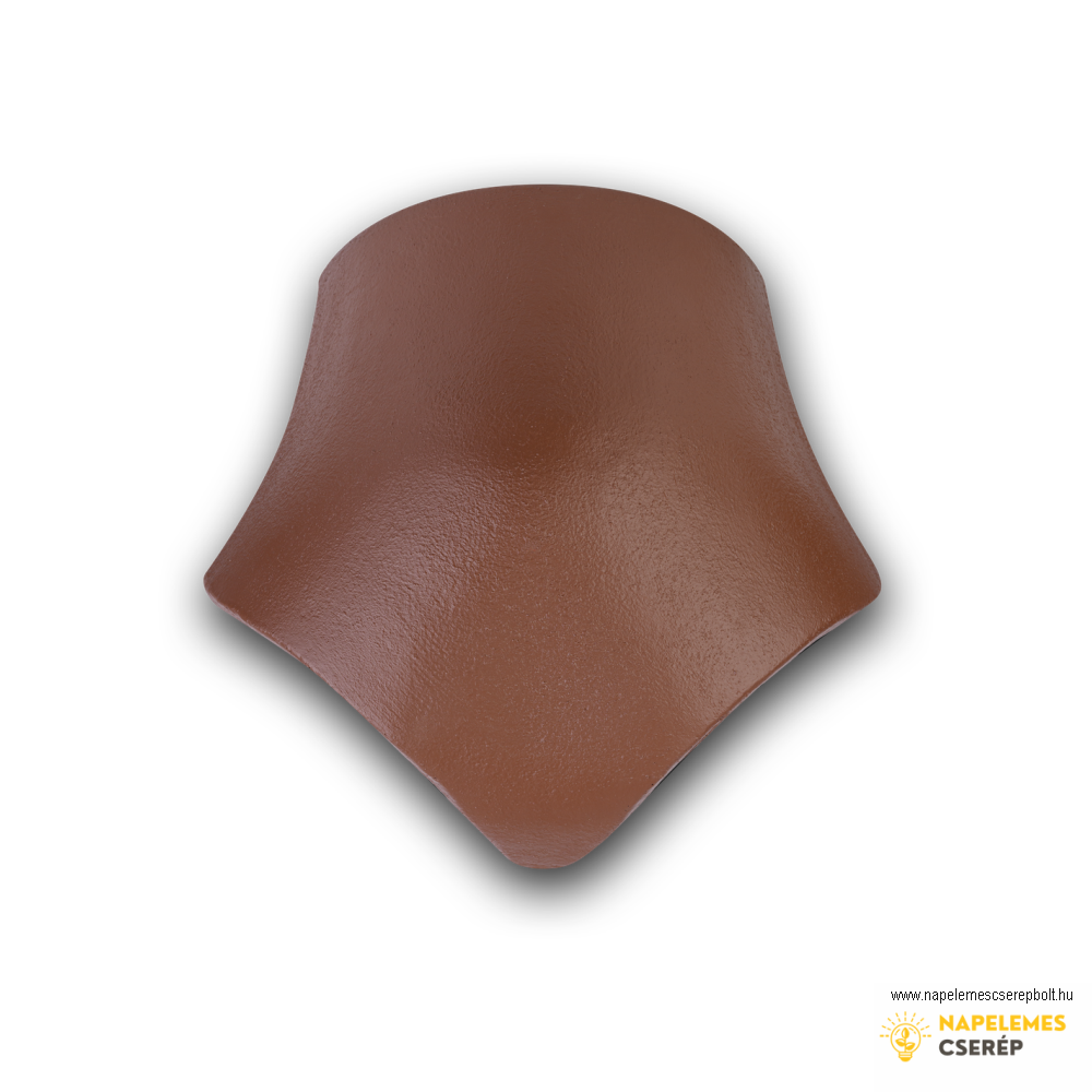 Kontyolt tetőknél a három irányból a kontycsúcsban összefutó kúpcserép sorok csatlakozó-elosztó eleme.