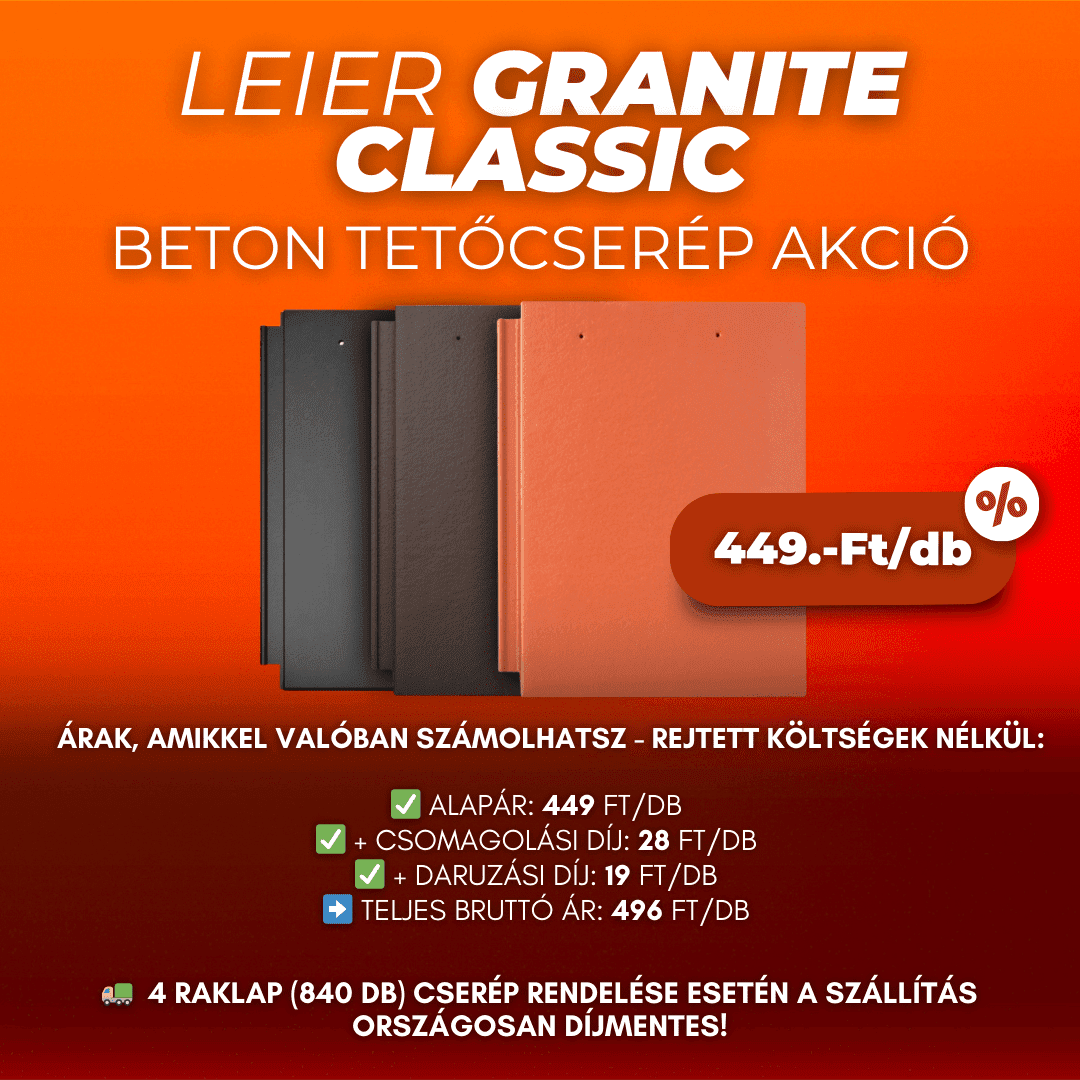 LEIER GRANITE CLASSIC BETON TETŐCSERÉP ÉS KIEGÉSZÍTŐI Archívum - Napelemes cserépbolt